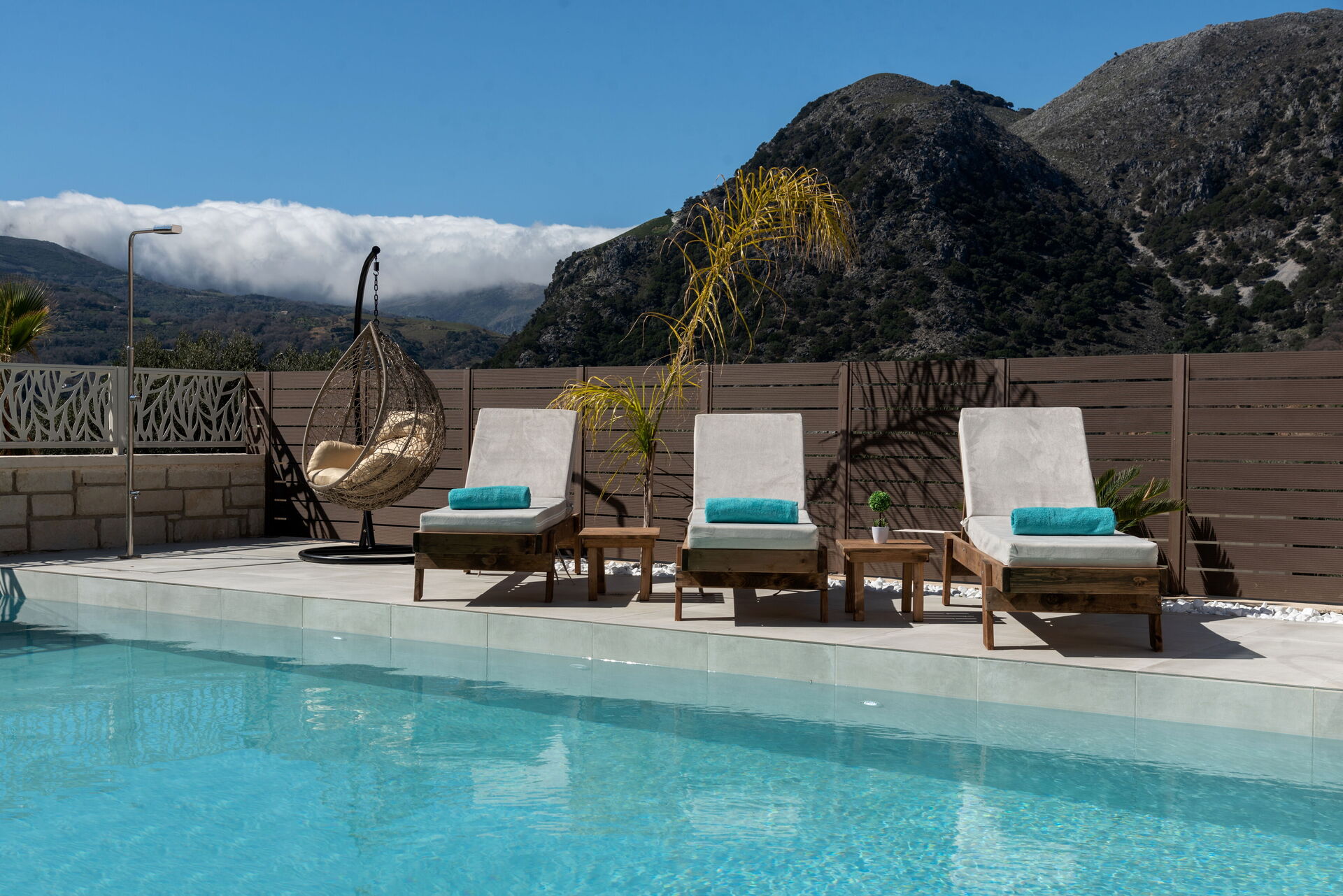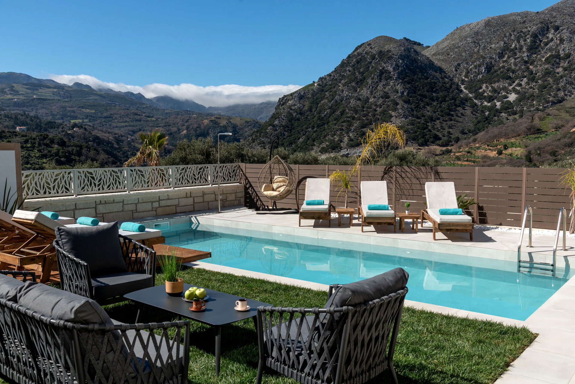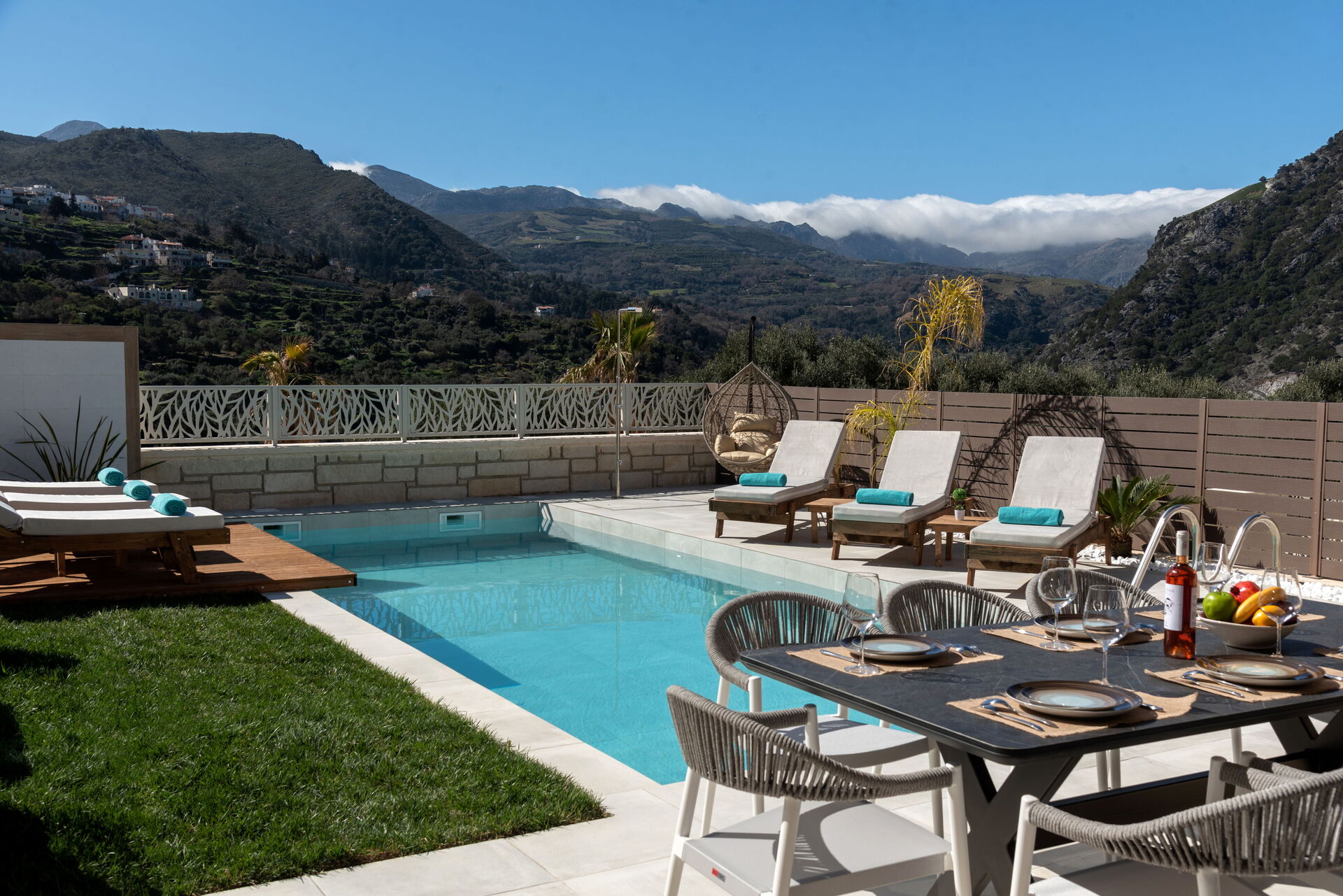 The villa was beautiful, in great condition, the view of the mountains from the pool was beautiful, and all amenities were in wonderful condition, but the main issue here is Maria the hostess, she and her husband were the friendliest most welcoming people ever, they brought us every day something to taste, an amazing orange cake and some other goodies, we asked Maria where we could buy some lamb chops and she just brought them in for us, upon our leaving she also brought us a farewell gift consisting of local specialities. I highly recommend staying in Maria's villas!