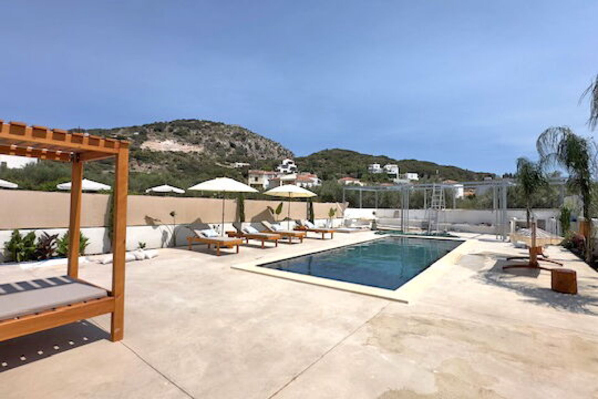 Having visited Greece as a family for more than 40 years we have experienced many, many apartments and this was by far the most well equipped and well thought out. Greek beds are renowned for being pretty ropey but these were so comfortable with lovely bedding. The sofa was way bigger than the photos suggested as way the whole apartment! Anything you can think of was provided, from fluffy towels and beach towels to dishwasher tablets, laundry detergent, first aid kit and a welcome package including wine and watermelon. The pool area was beautiful and the outdoor kitchen a lovely surprise. The pool itself was the perfect size and had a a large shelf at one end which was child depth. The host Chrysoula was very sweet and helpful, and brought us figs from her garden and local raki. All in all we had a wonderful, relaxing stay and would recommend it to anyone