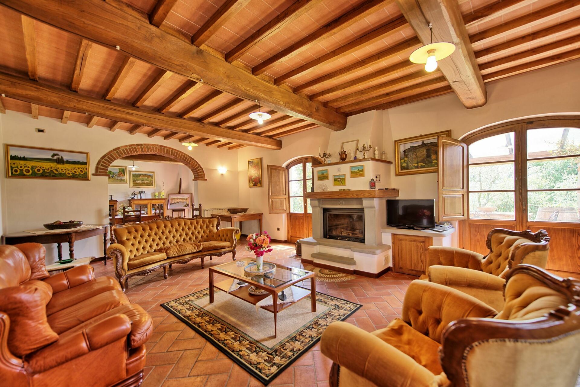 Au coeur de la Toscane, aux portes du Chianti, s'élève cette splendide maison de campagne, récemment restaurée et aménagée de tout le confort moderne et pratique avec goût.
