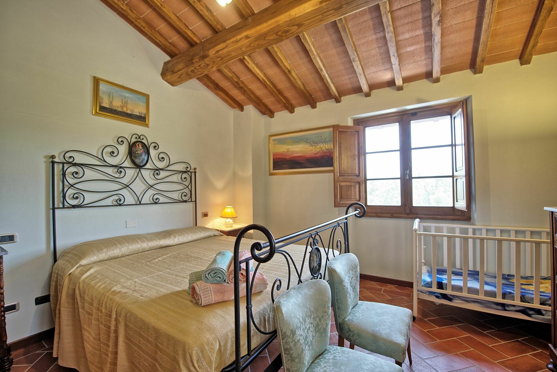 La propriété est située au sommet d'une colline, au milieu de la nature, et l'on peut y voir une splendide part du Valdarno. Vous pourrez profiter aussi bien d'une longue que d'une courte période de vacances.