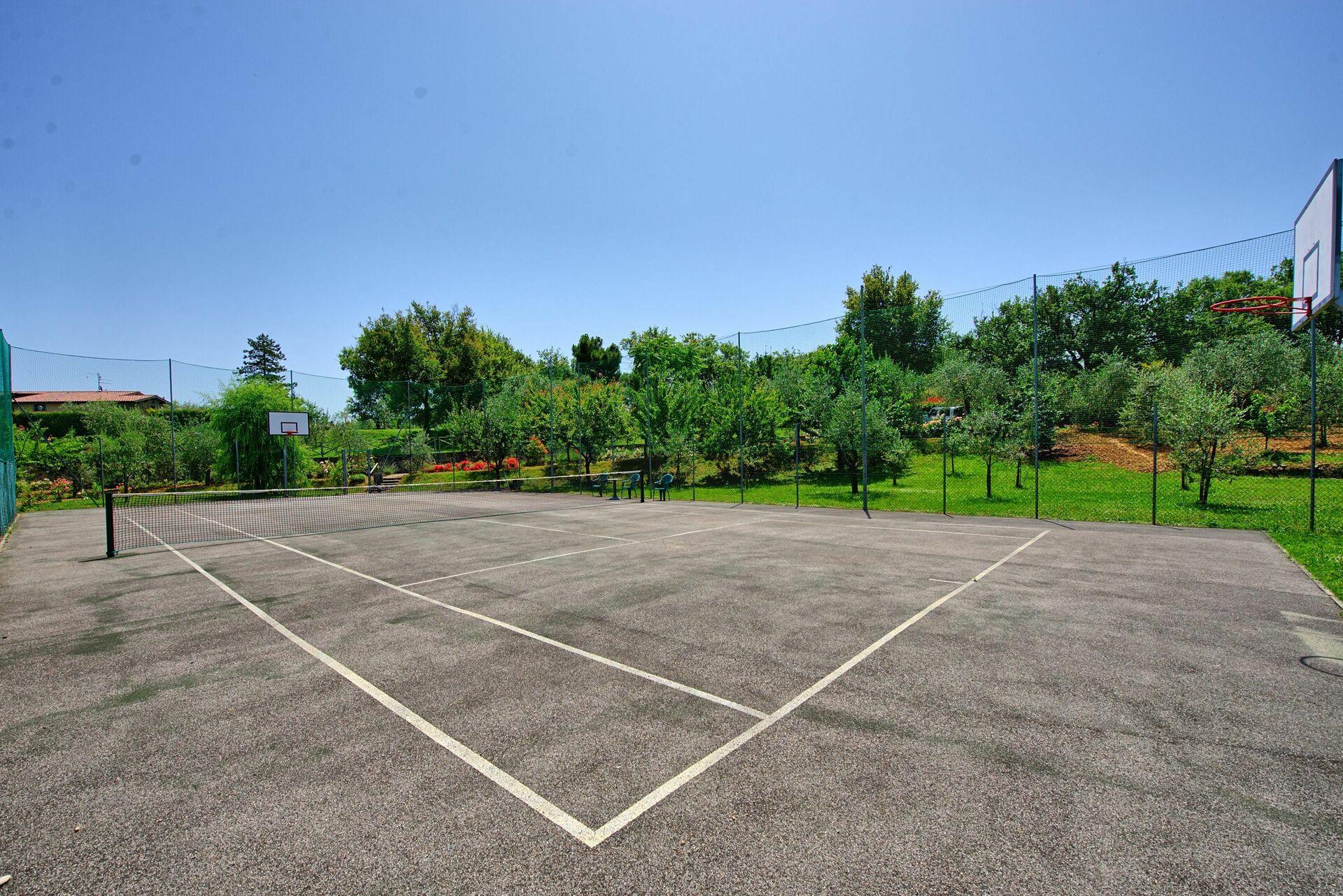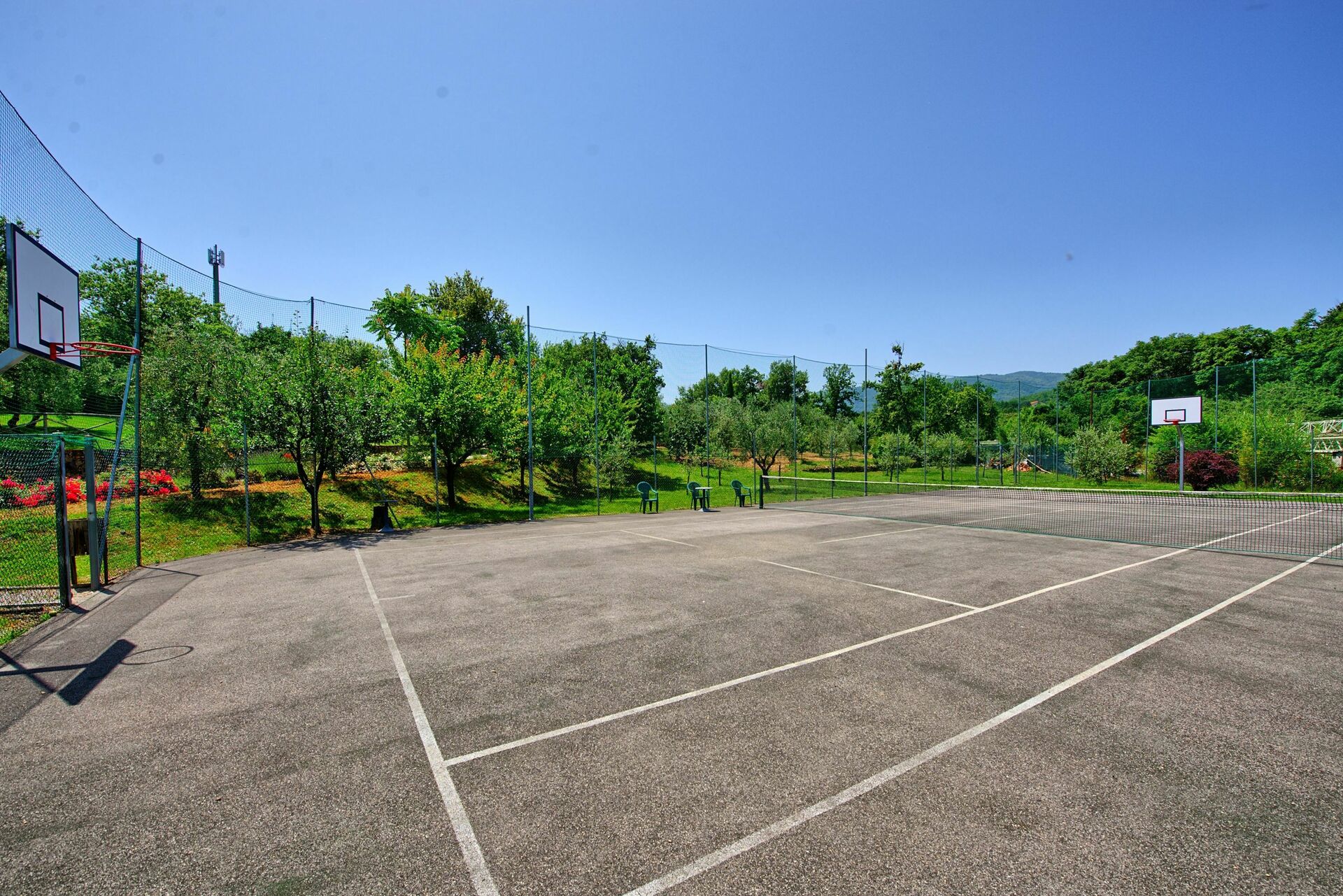 A l'intérieur du jardin, il y a aussi un terrain de tennis, de basket et de volley pour le seul usage des résidents.