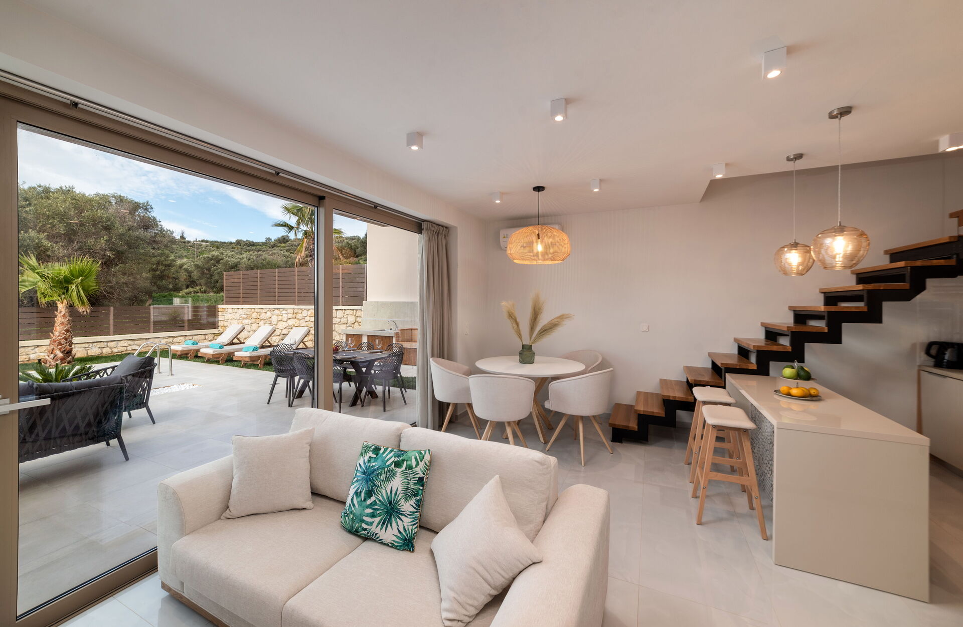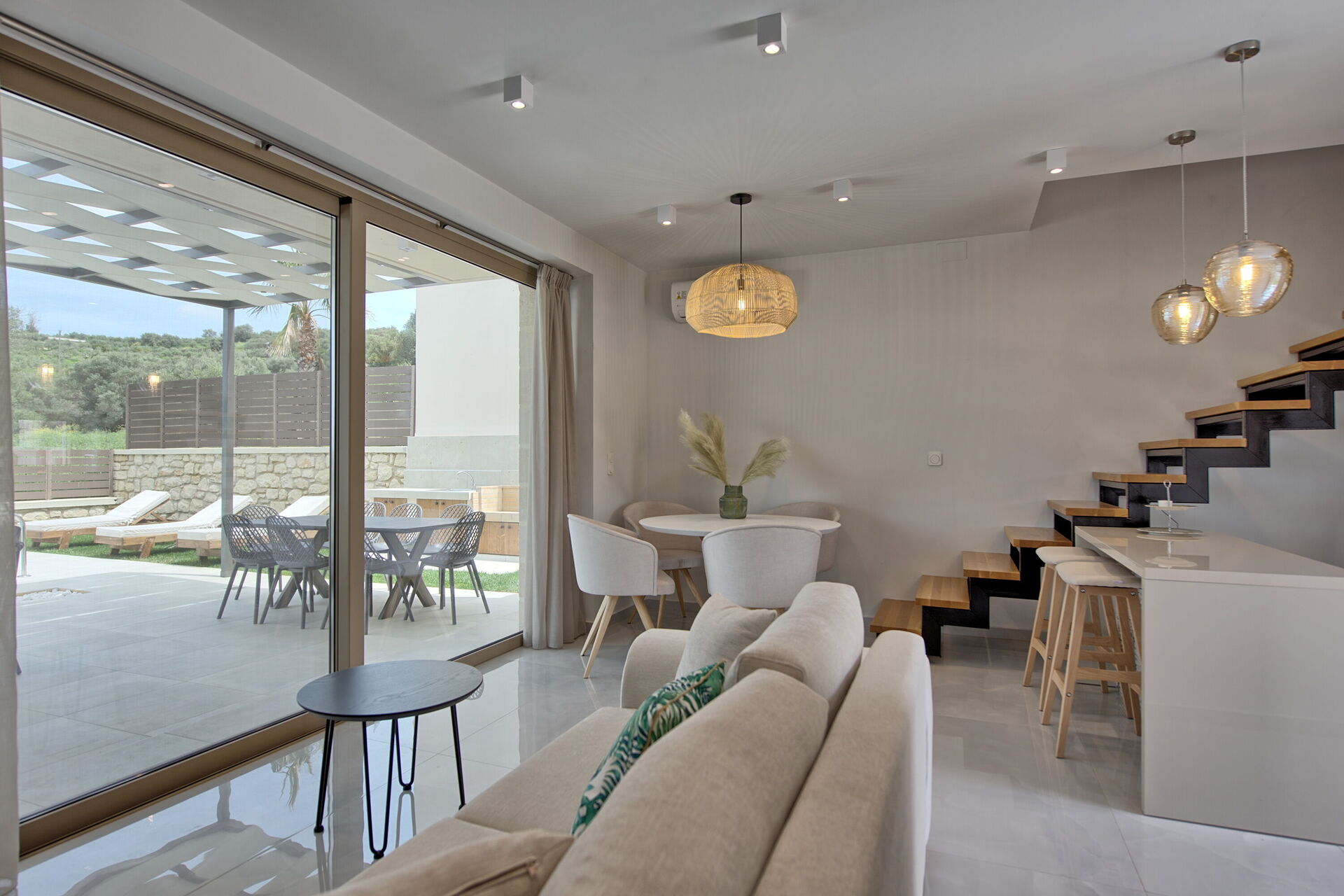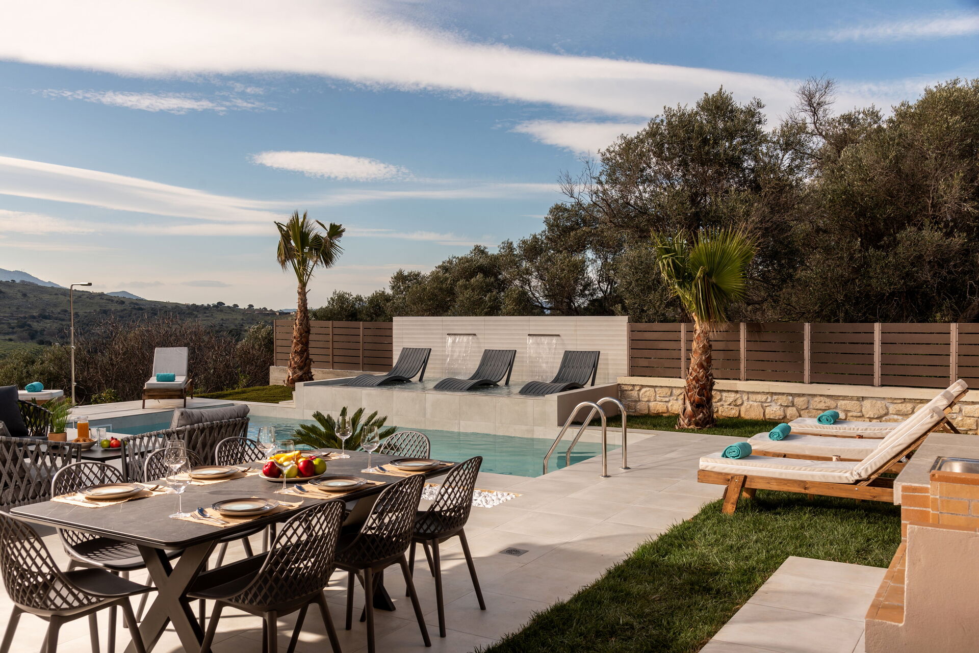 Outside there is a lovely dining area, and a beautiful private pool for relaxing and having fun with family or friends on hot Crete days.