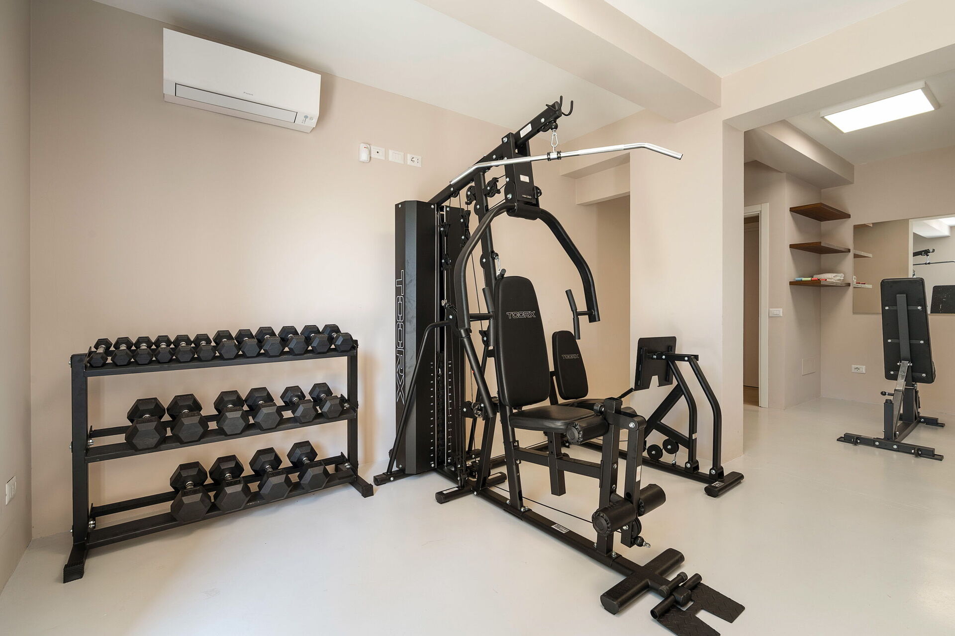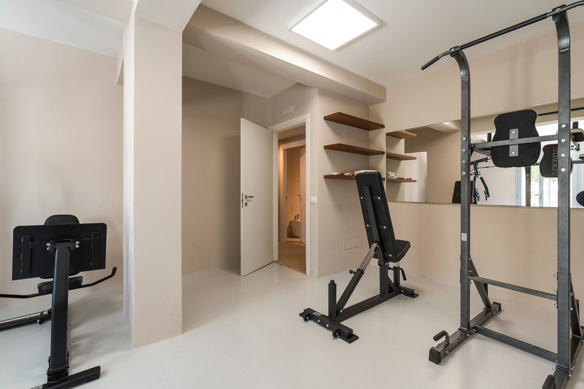 Piano inferiore: 2 camere matrimoniali, 2 bagni con doccia, lavanderia, area fitness.