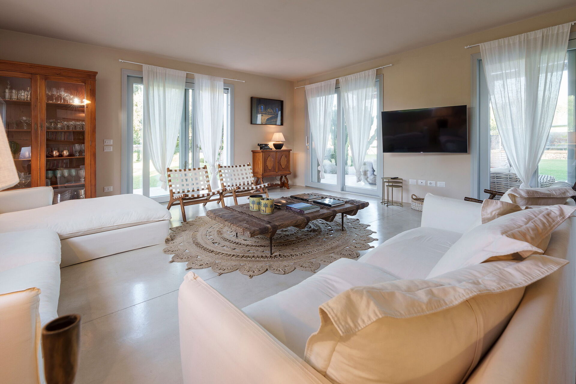 Gli interni, dotati di ogni comfort, permettono di ospitare fino a 12 persone grazie alle 6 ampie camere da letto.