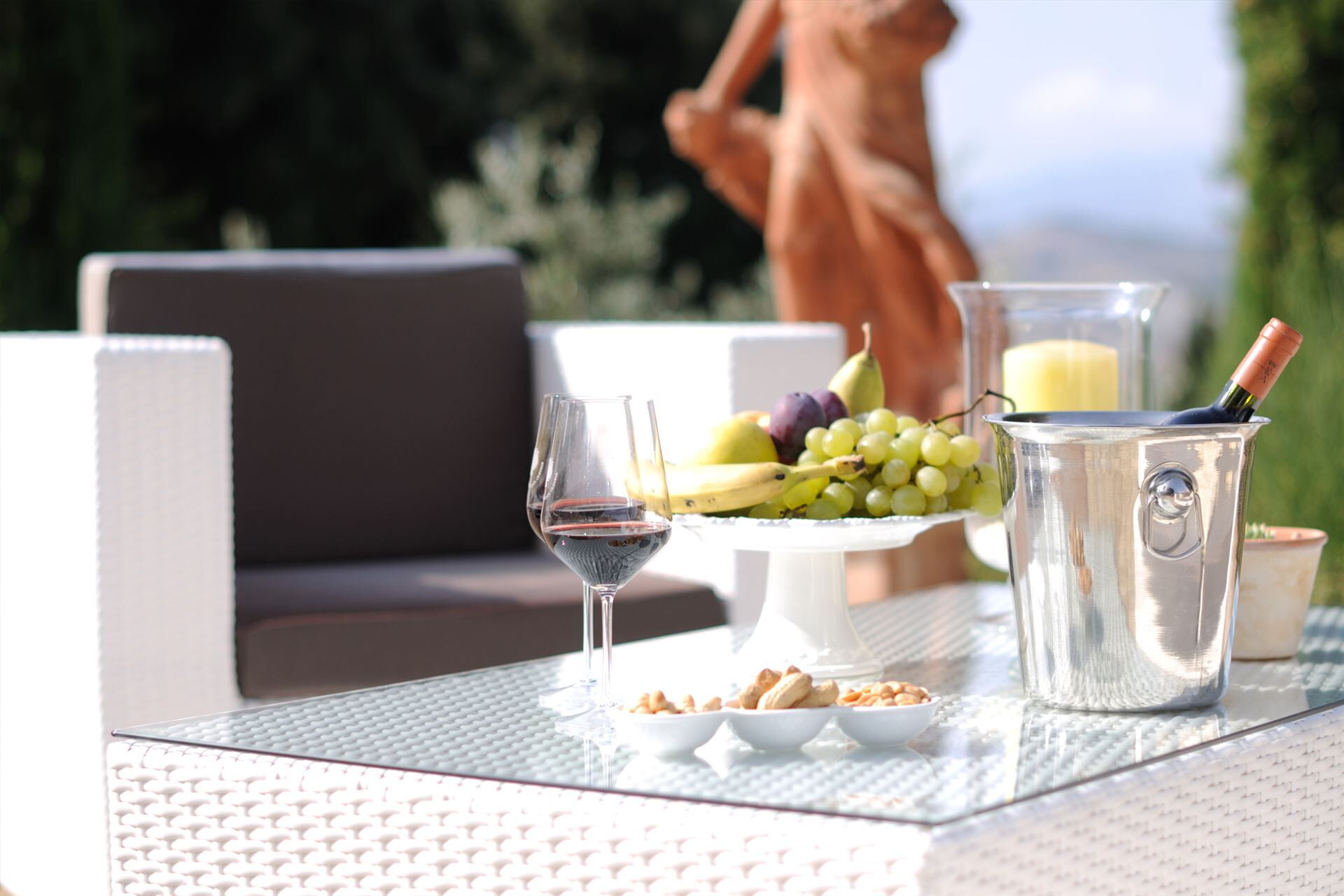 A disposizione degli ospiti: 6 camere ognuna con bagno privato; 12 posti letto; piscina riservata all'uso esclusivo degli ospiti (12 x 6 metri - profondità: 1.40 metri); solarium attrezzato con lettini prendisole e ombrelloni; ampio e curato giardino; veranda attrezzata per mangiare all'aria aperta; barbecue, parcheggio all’interno della proprietà; terrazze con vista panoramica; aria condizionata, collegamento internet wi-fi.