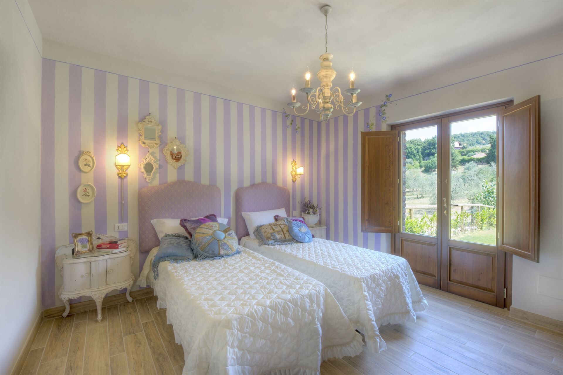 Primo piano: camera matrimoniale con bagno privato con doccia e accesso al balcone, camera matrimoniale (zanzariera) con bagno privato con doccia e accesso privato a terrazza-solarium con vista panoramica sulle colline situata al secondo piano.