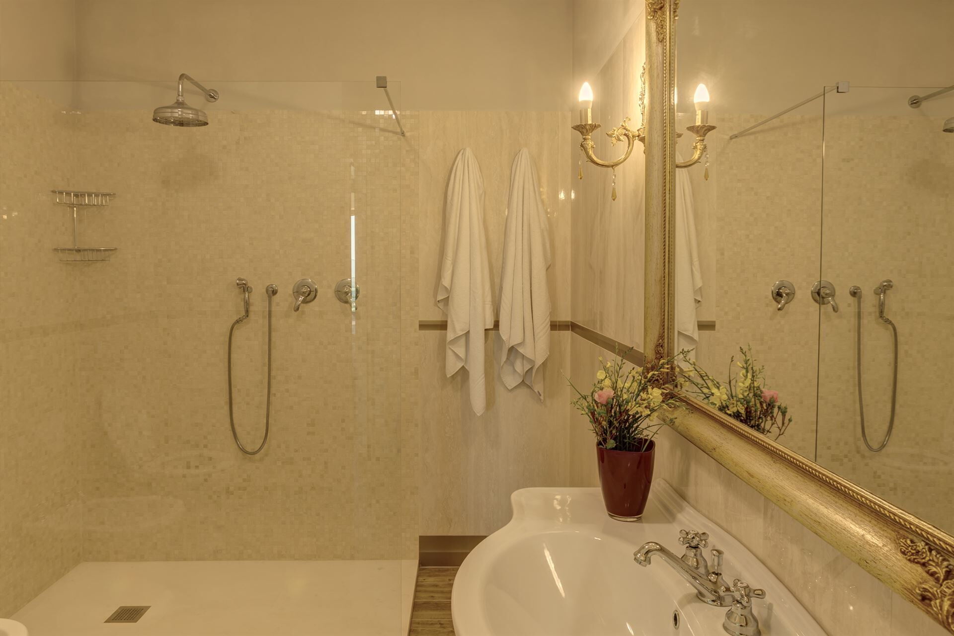 Piano inferiore: 2 camere matrimoniali ognuna con bagno privato con doccia e accesso a terrazza.
