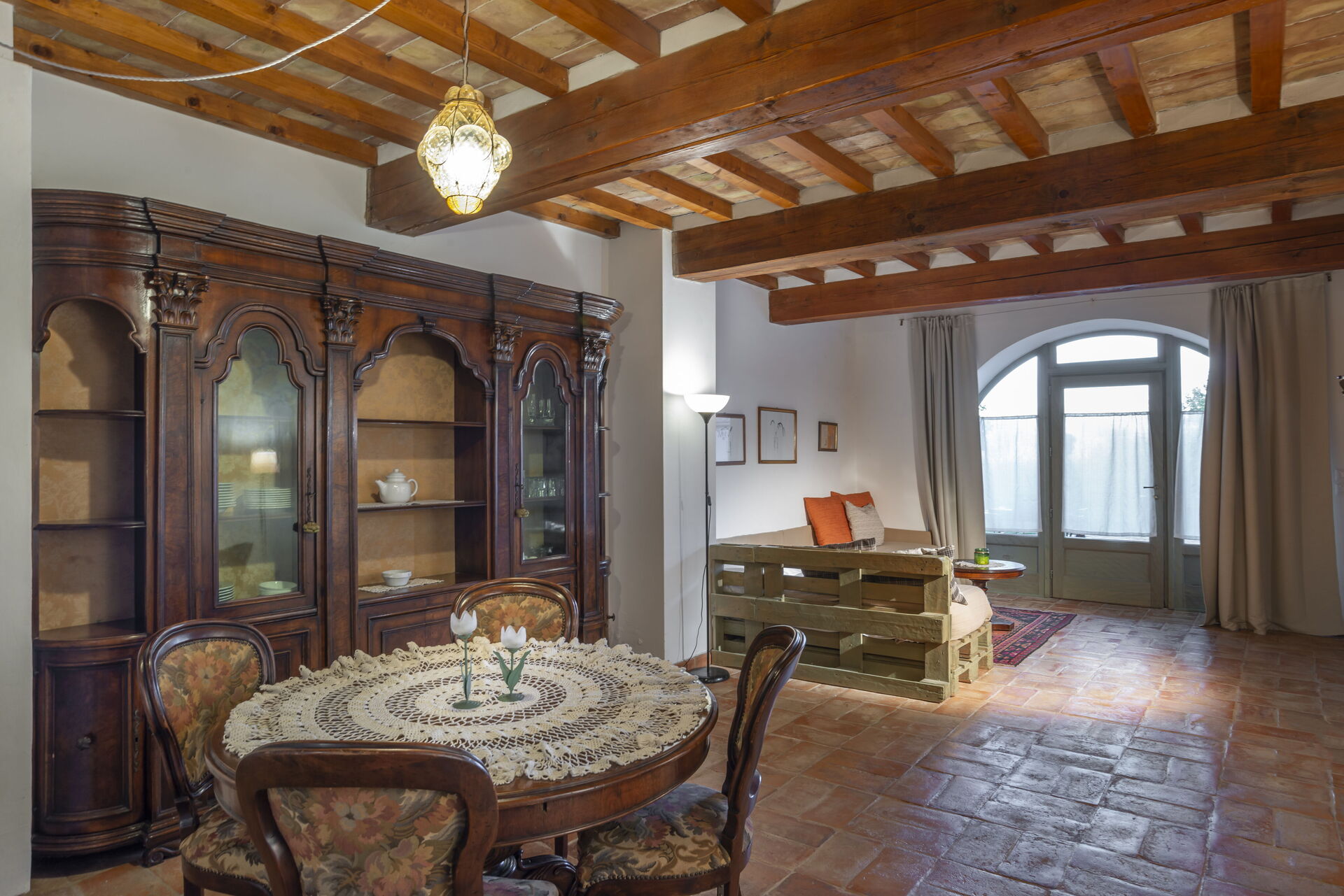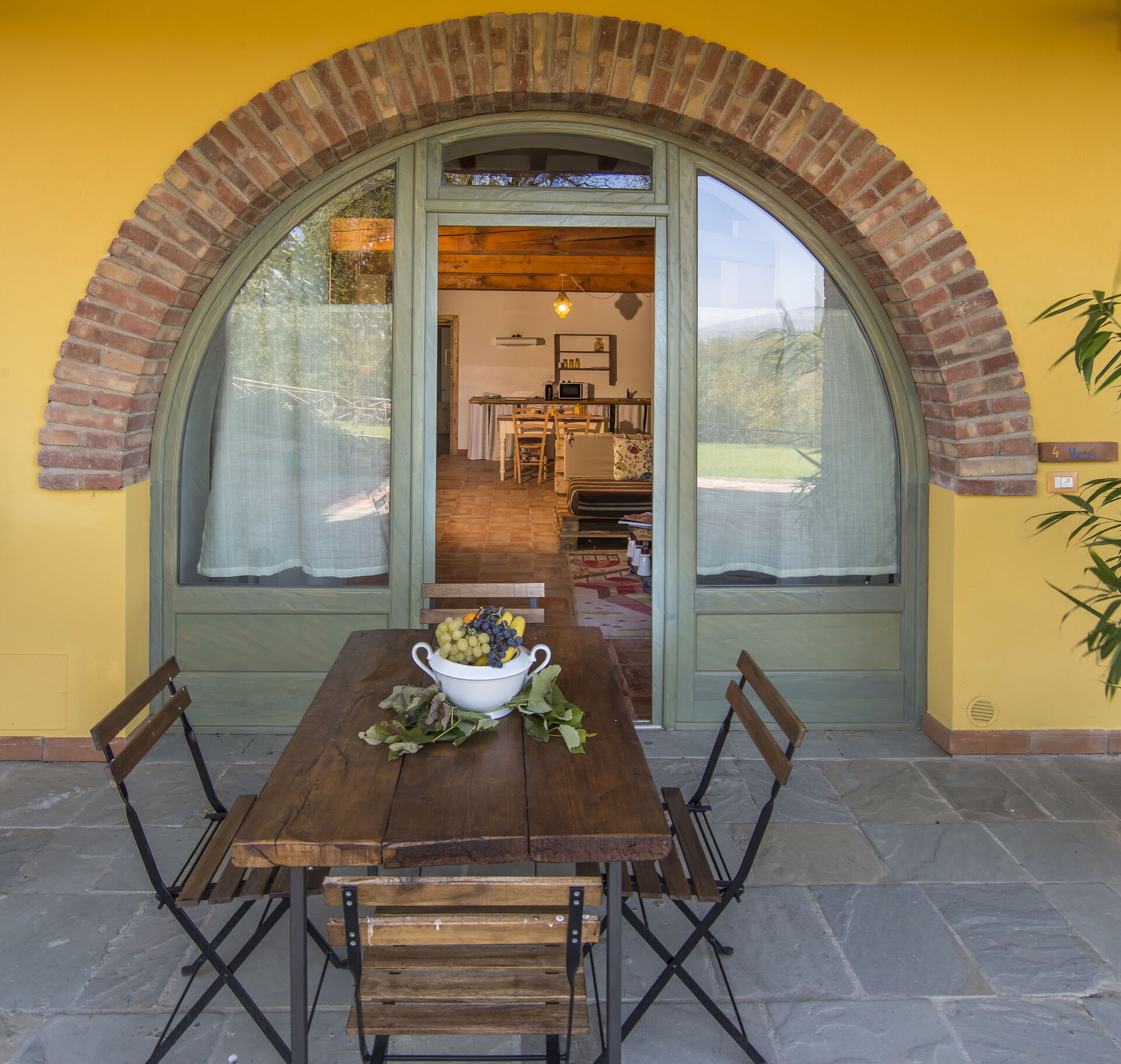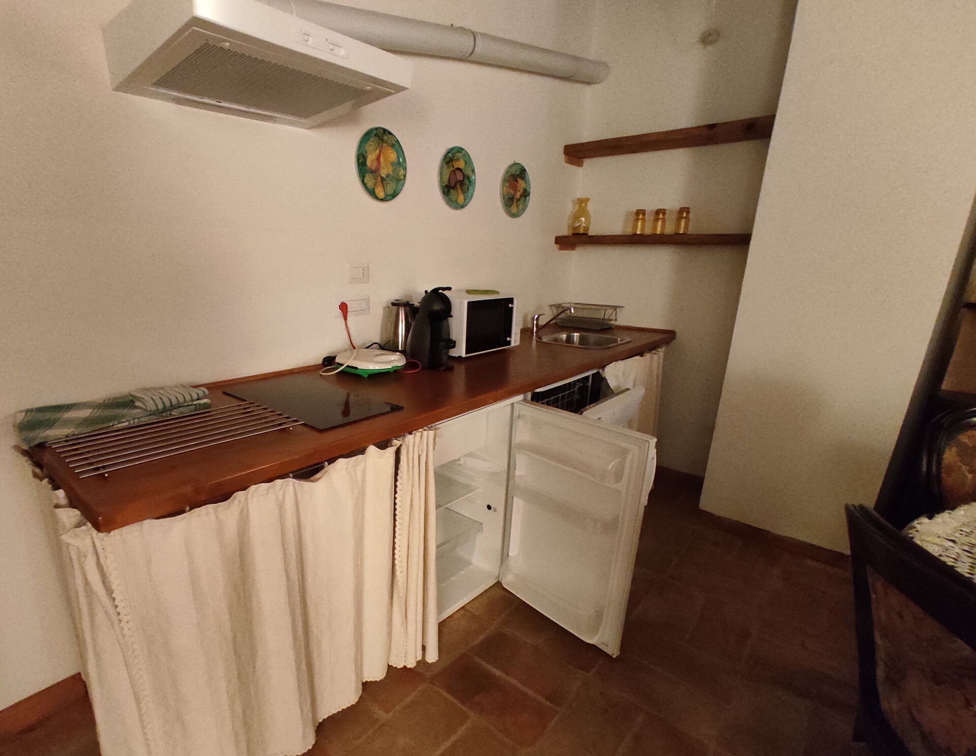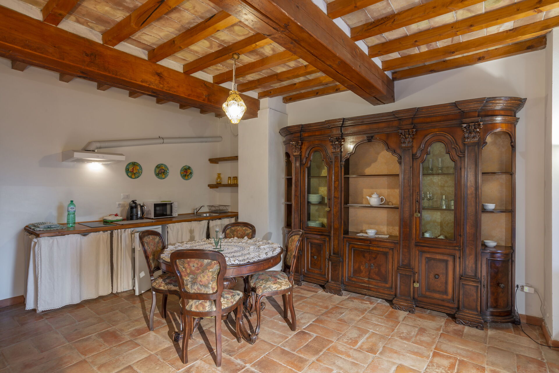 Dishwasher, Italian Coffee Machine, Microwave, Stove Top, Dining Table, Television, Exit to the patio