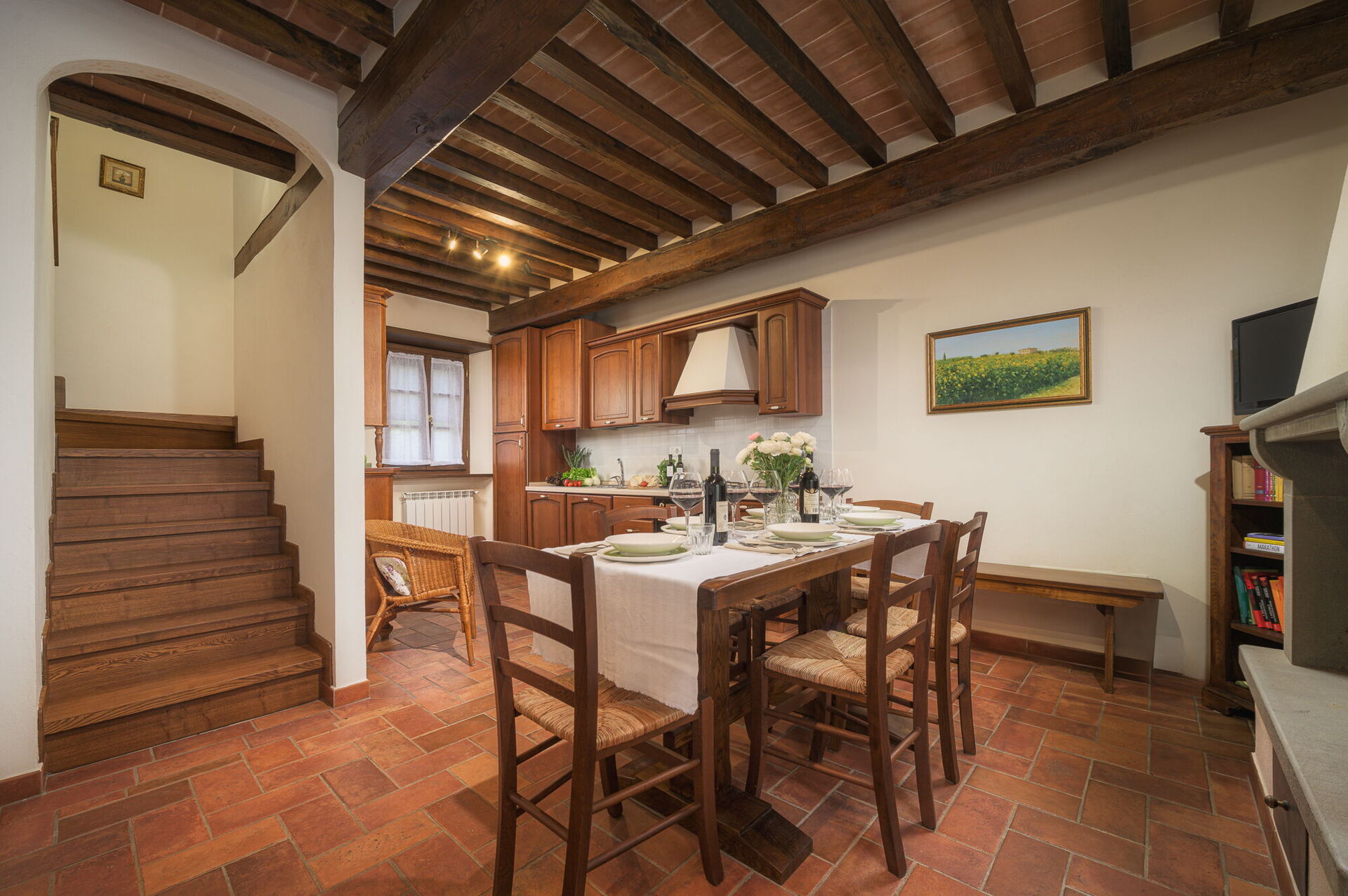 Distances: Cortona (shops of all kinds and train station) 9,50 km, Camucia 9.50 km, Lake Trasimeno 25 km, Arezzo 38 km, Montepulciano 38 km, Siena 82 km, Florence 122 km, Florence (airport) 136 km.
