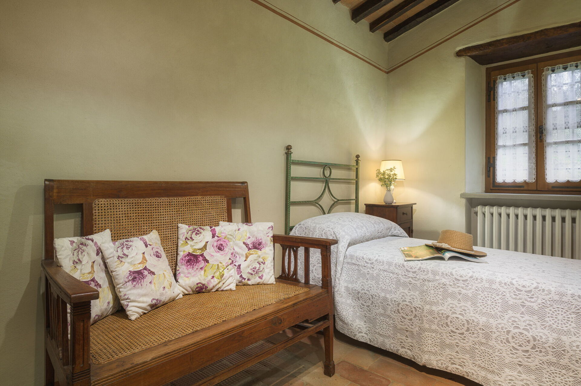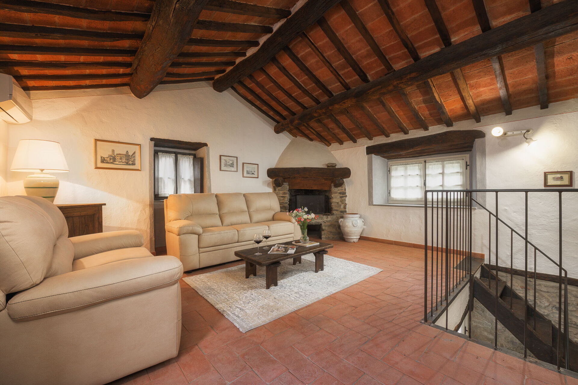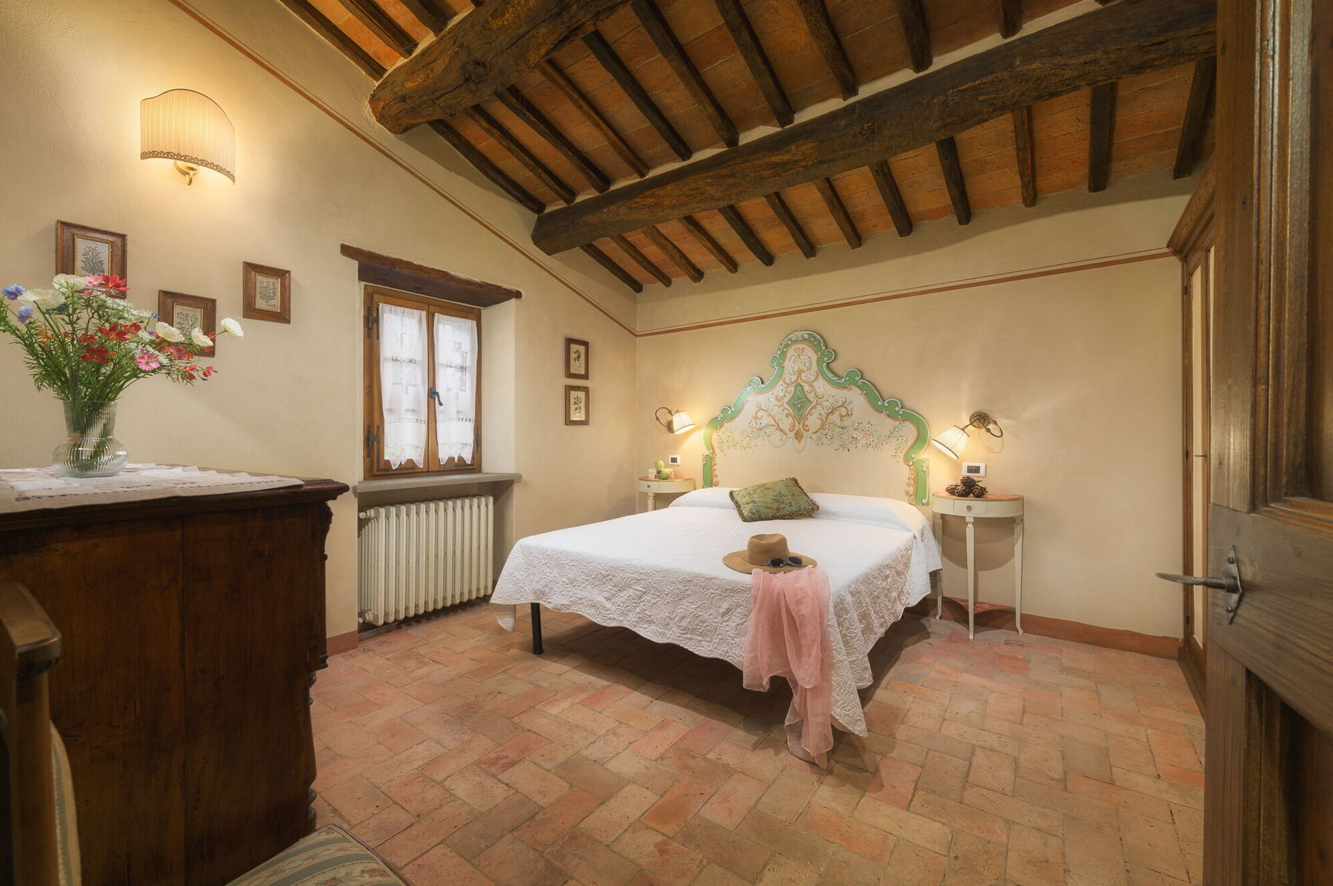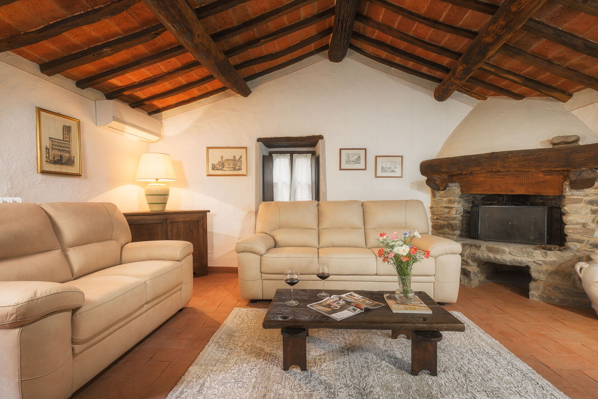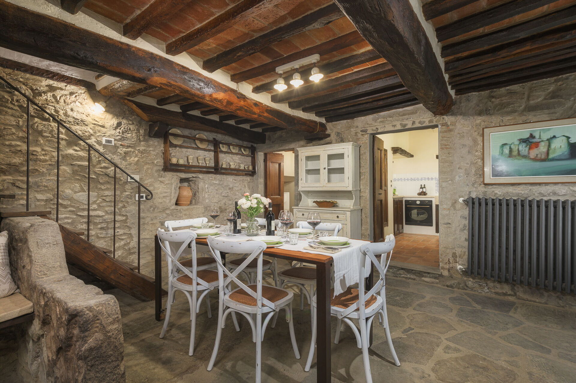 The property is made up of two stone houses that are close to each other and rented together to one group of friends or family at a time. Each of the two units has 3 bedrooms; in total they can comfortably accommodate up to 10 people in tastefully furnished, Tuscan interiors.