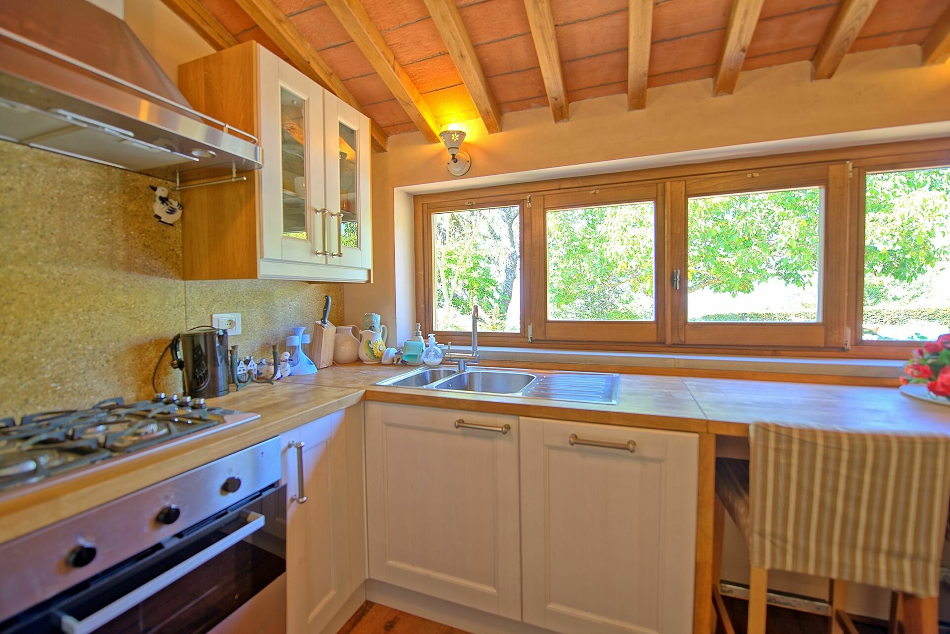 Vakkert lite uavhengig hus i rolig og panoramisk beliggenhet på åsene rundt Arezzo, med utsikt over det omkringliggende landskapet og Arezzo i det fjerne.