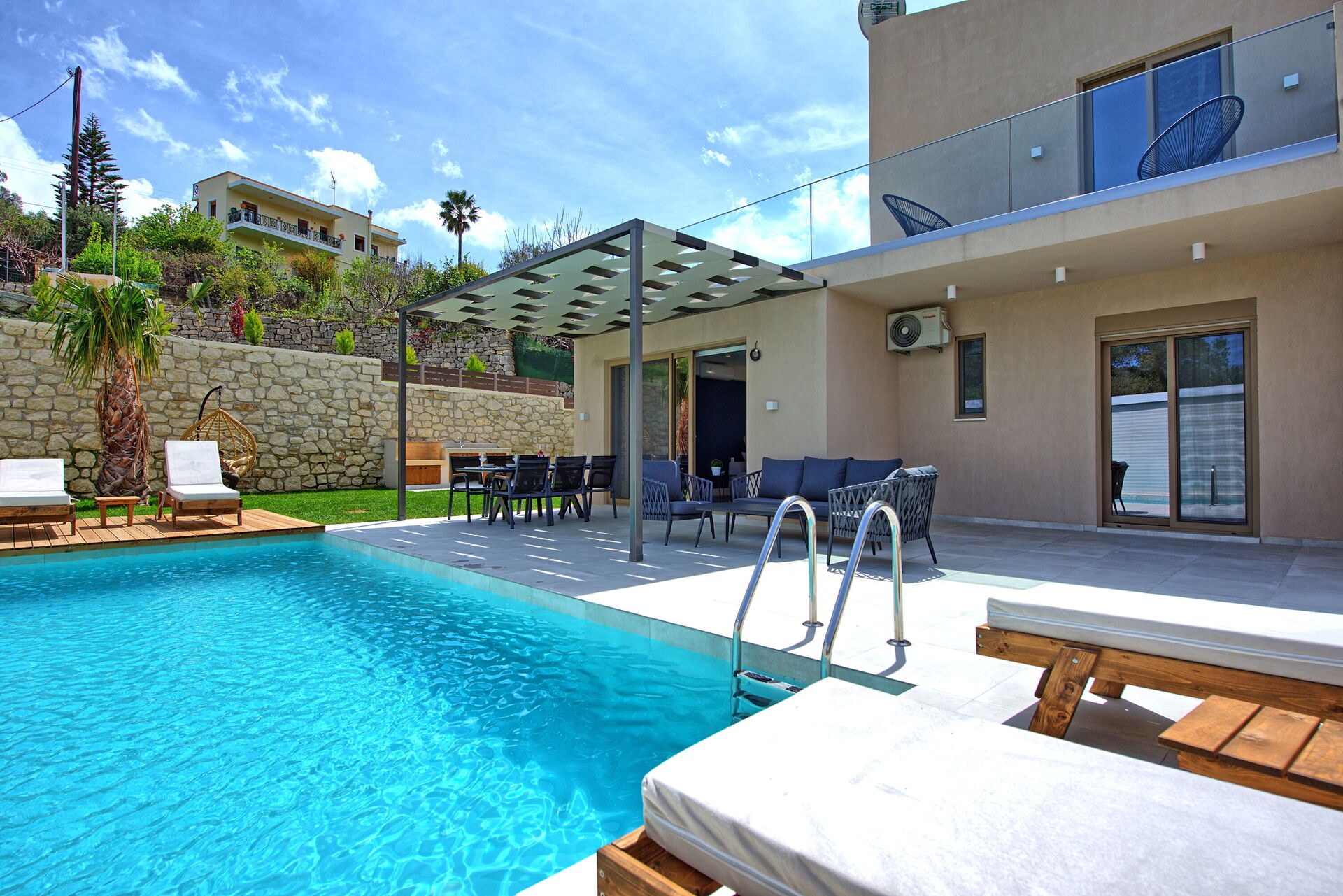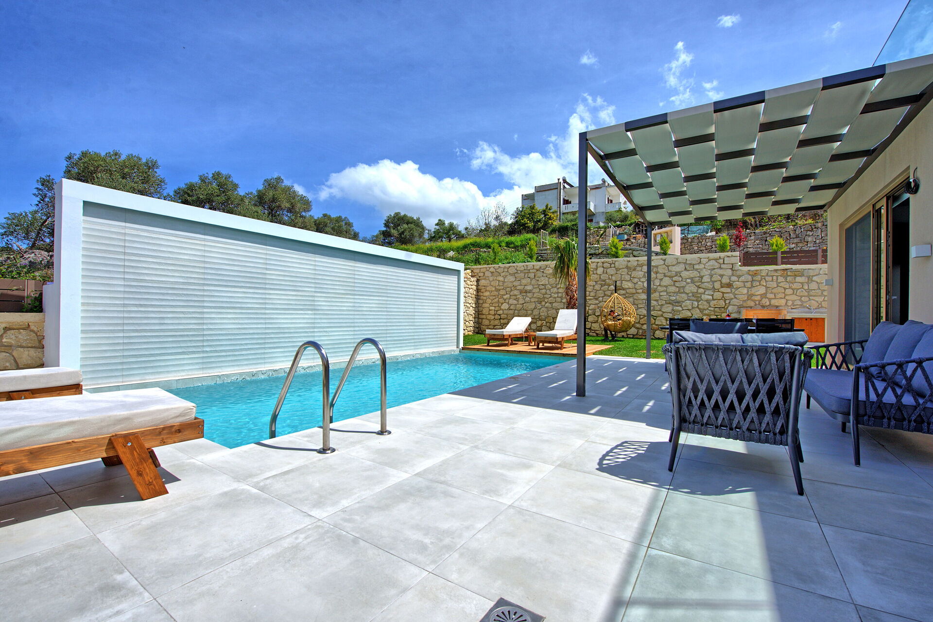 Outside there is a lovely dining area, and a beautiful private pool for relaxing and having fun with family or friends on hot Crete days.