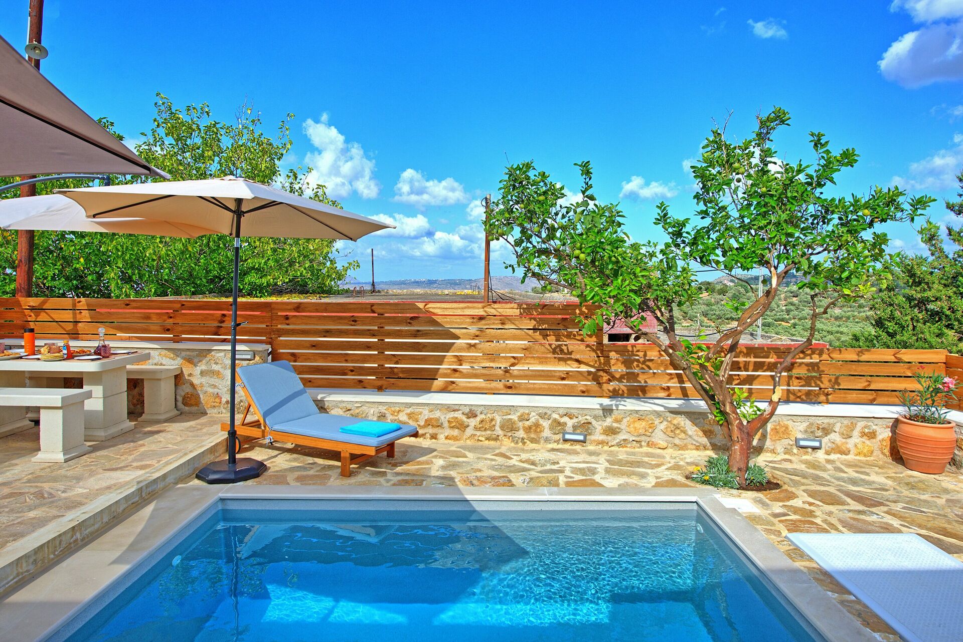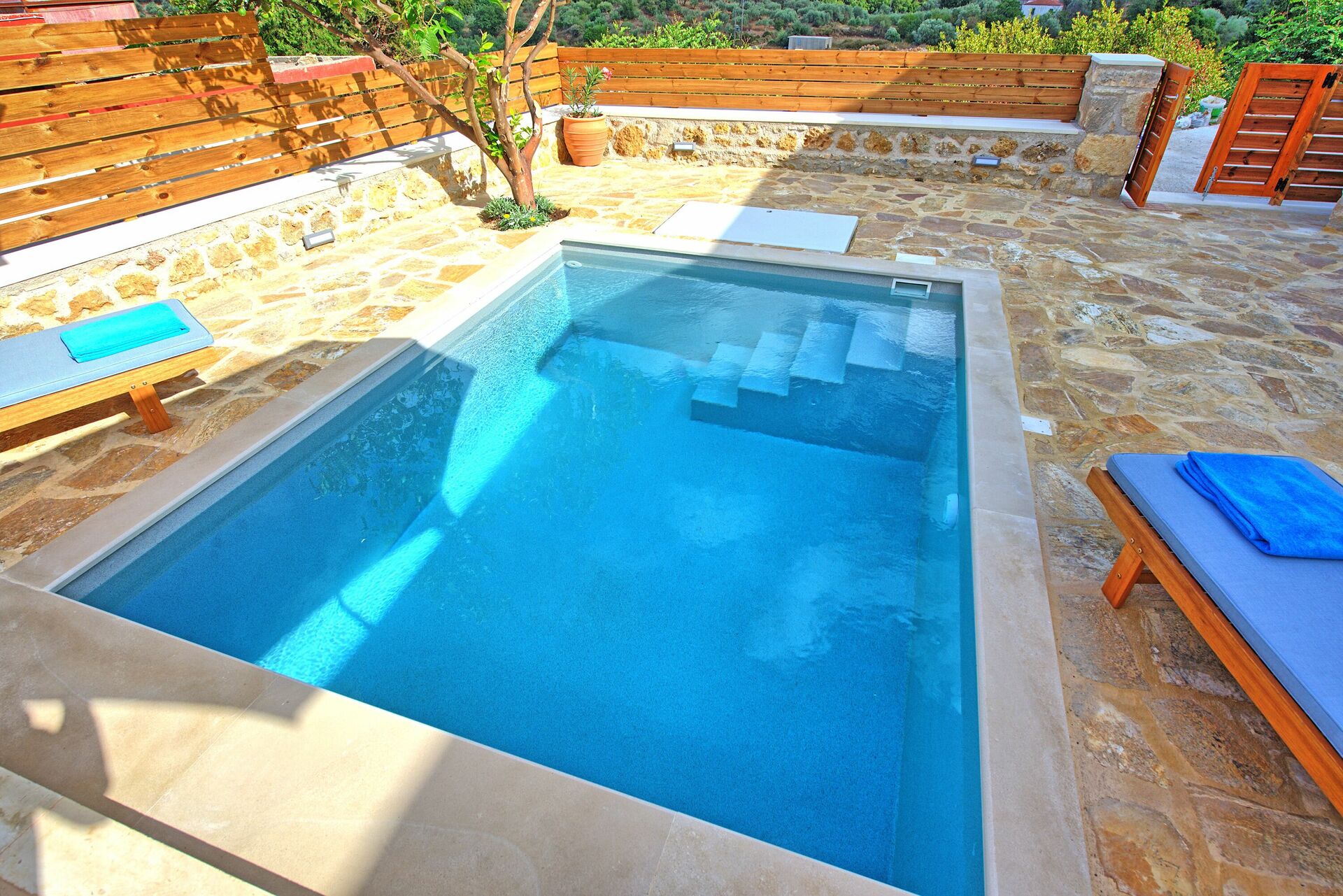 Outside, there is a private pool for having fun and cooling off on Crete’s hot summer days.