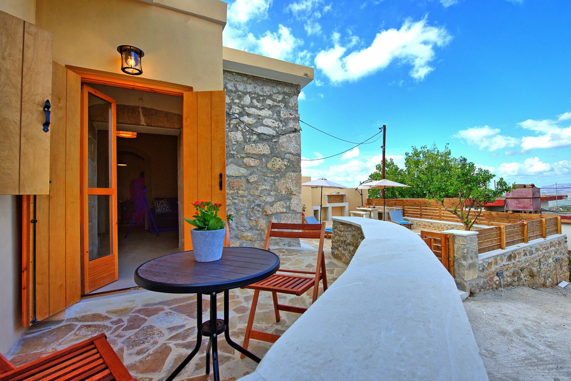 Distances: Embrosneros (restaurant and food shops) 900 meters away; Vrysses (shops of all kinds) 6 km; Georgioupolis (beaches) 12 km; Almyrida 24 km; Xania 40 km; airport 48 km away.