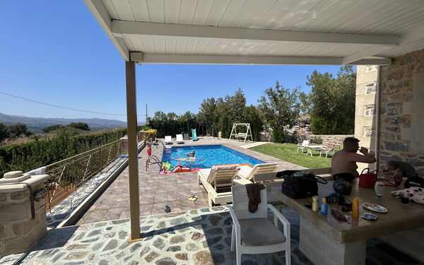 We all enjoyed the house very much. It was nice and clean, pool was at a good temperature and clean, AC in every room, lovely people that left us some drinks and bread. And the homemade rakya, olive oil, tomatoes, herbs. Recommending 10/10!!! There was a leak issue in the bathroom. Taken care of right away!! Super service. Definitely revisiting this place soon.