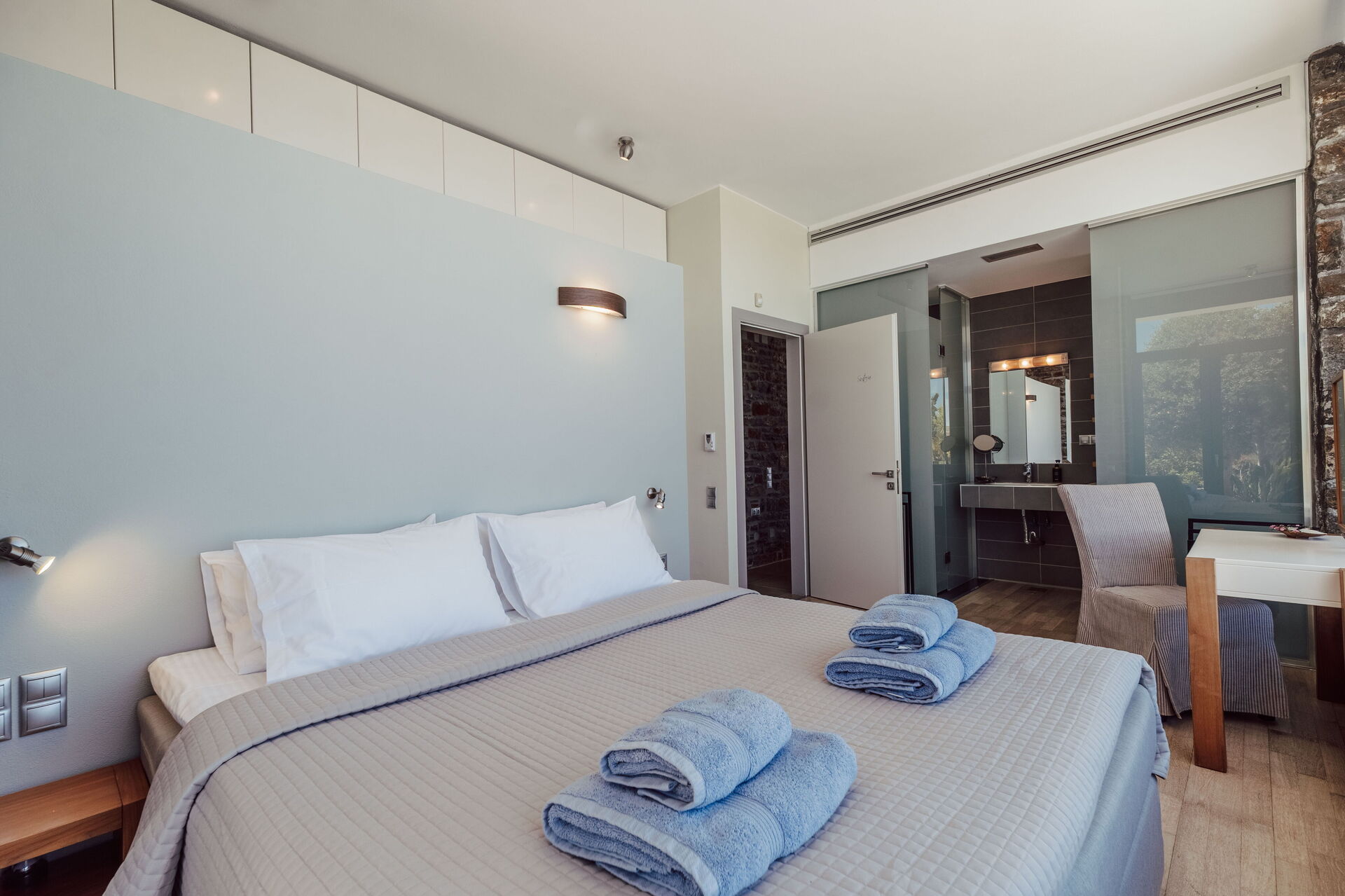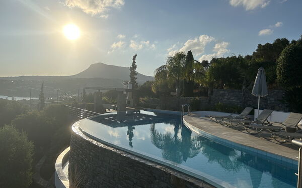 As a group of friends we had a fantastic time at this property. It is well kitted out, modern feeling, aircon in all the bedrooms. Great views and a lovely pool. A short 10min walk into Almyrida for eating out. We especially loved the outdoor kitchen dining area down by the pool and had all our meals down there. Vivian did a fantastic job with advice and recommendations and the few niggles we had were quickly sorted. Would love to come and stay again!