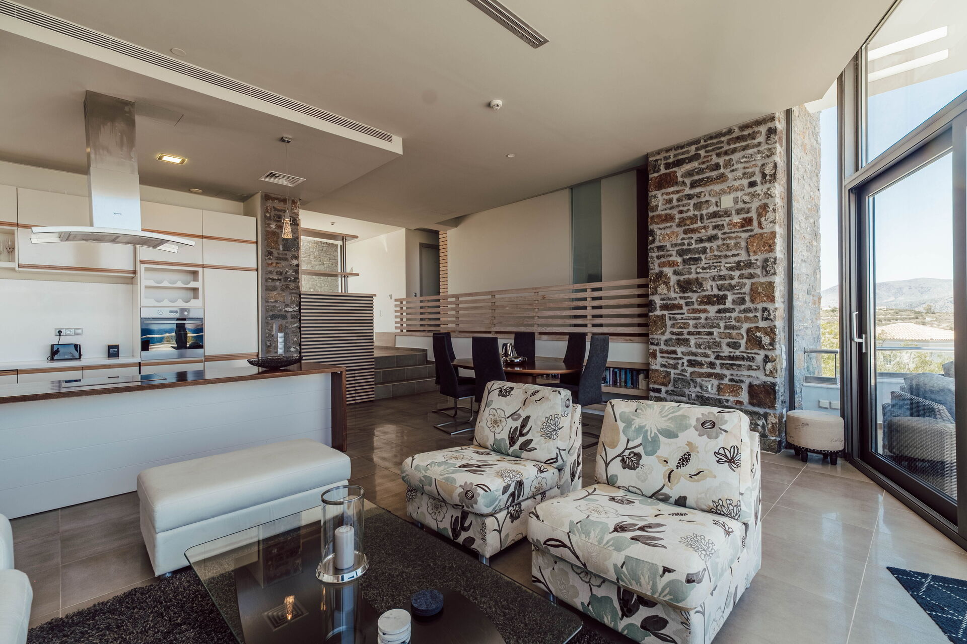 Distances: sea 500 meters away (Kera beach); Almyrida (shops of all kinds) 1 km; Kalives (beach) 3 km, Georgioupoli 17 km, Chania 26 km, airport 33 km, Rethimo 52 km, Heraklion 126 km.Описание интерьера