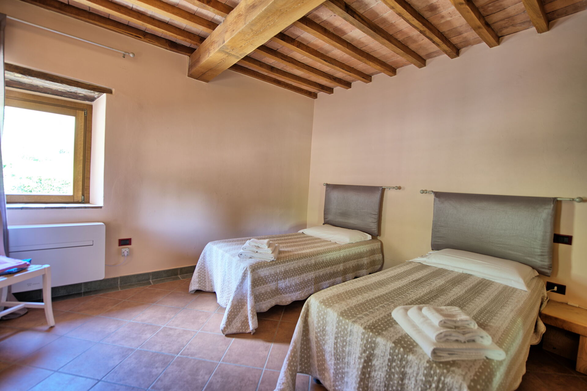 1st Floor: living room (Satellite TV) with fireplace and access to a small, private furnished terrace, bedroom with 2 single beds (air conditioning)