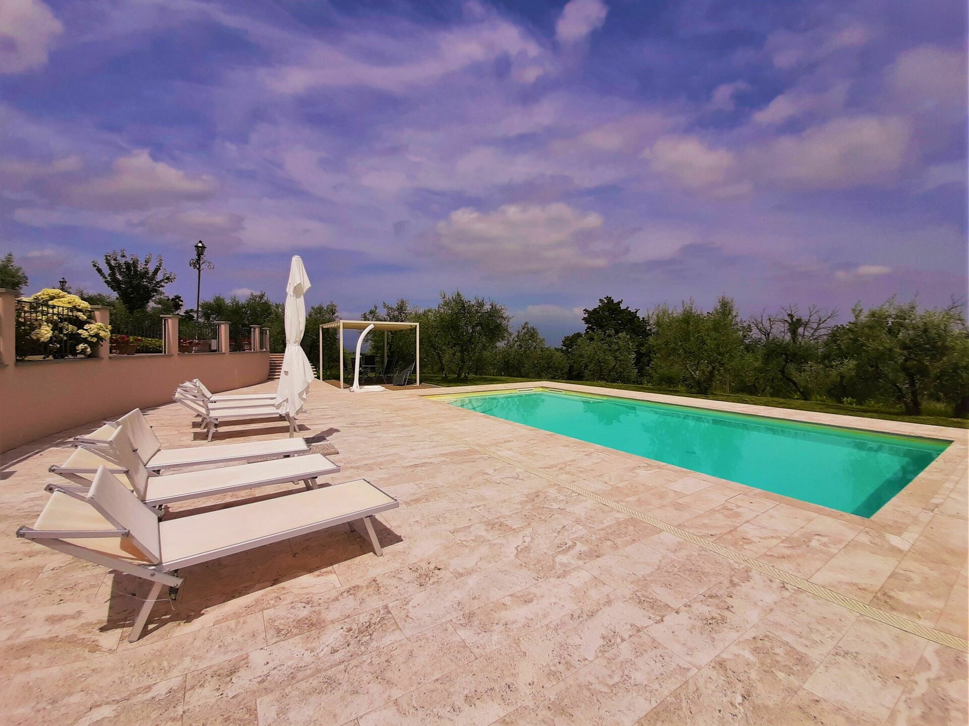 Die Eigentümerin , Frau Elisabetta Morganti ist immer ansprechbar und reagiert schneller als der Schall . Ihr werter Herr Papa ist der Gute Geist der nahezu unsichtbar stets den Pool auf Vordermann hält . Der ist übrigens mittels innen gebauter mehrstufiger Treppe ideal zum rein – und raussteigen .