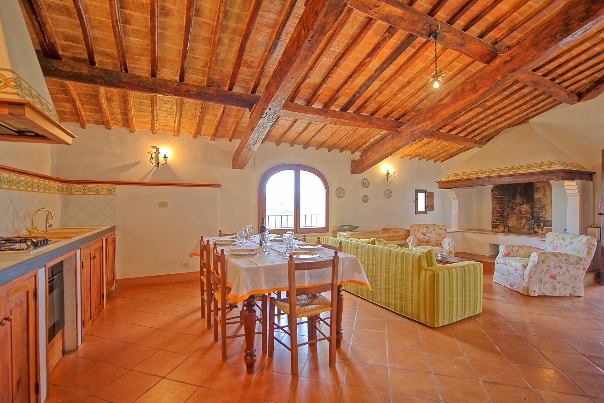 Dining Table, Dishwasher, Exit to the patio, Fireplace, Freezer, Oven