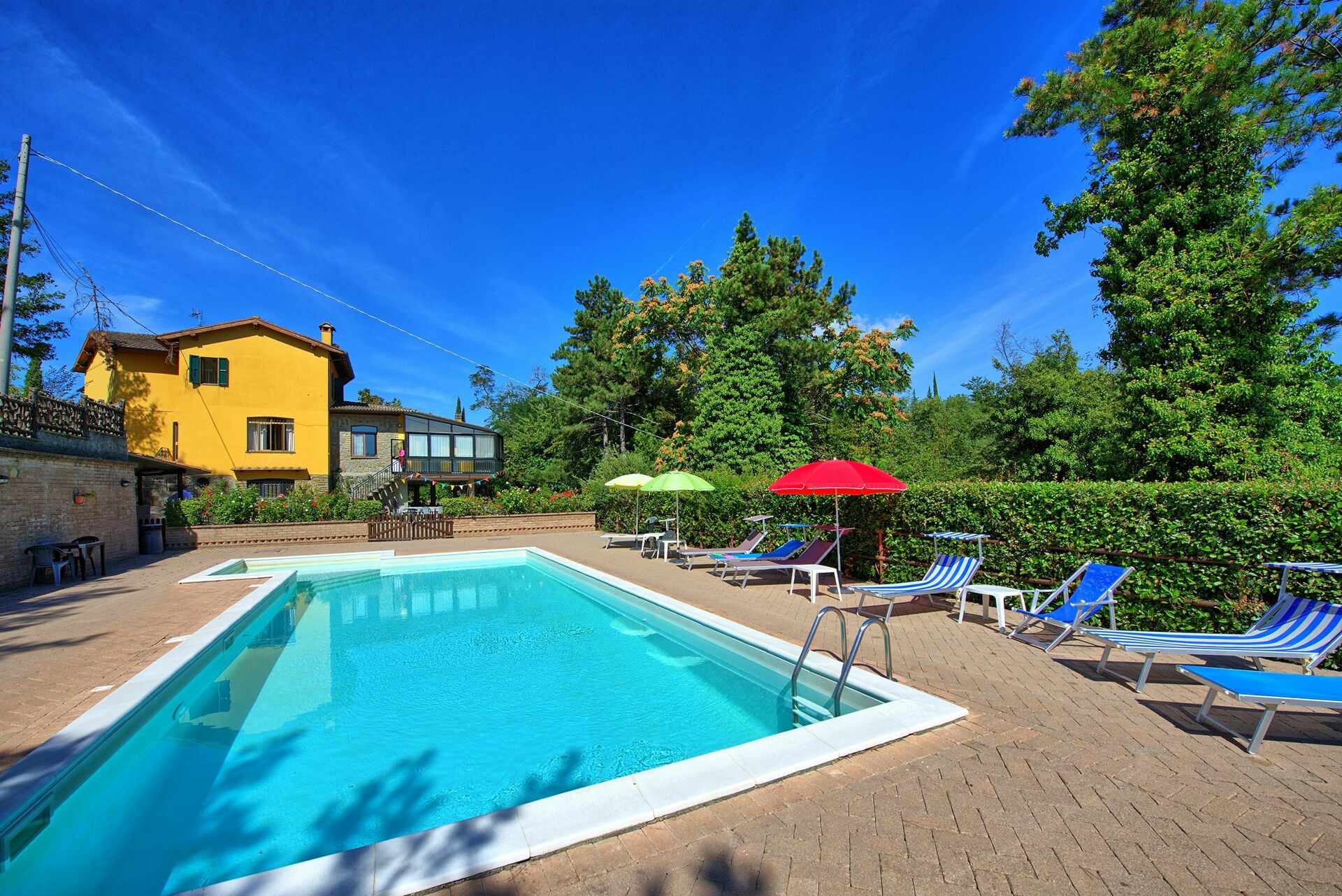 Stort privat hus på bergen öster om Arezzo i Toscana. Semesterhuset ligger en kort bit från den lilla staden Anghiari. Huset är rymligt och är inrett i rustik stil. Utanför kan gästerna njuta av en privat pool och en helt inhägnad trädgård.