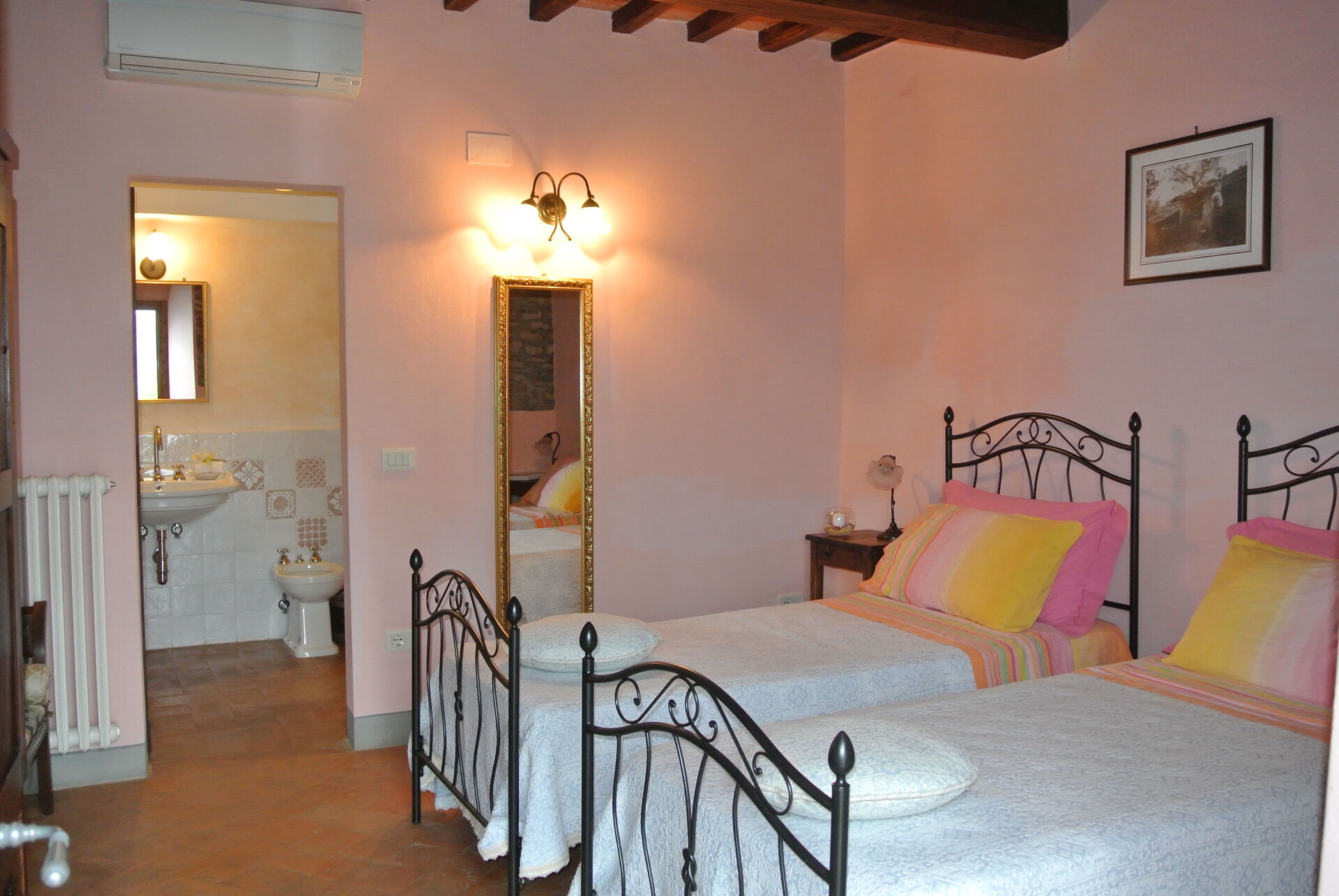 Air Conditioning, Hairdryer, Bidet, Shower, Basin, Toilet, 2 Single Bed